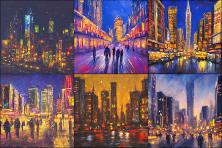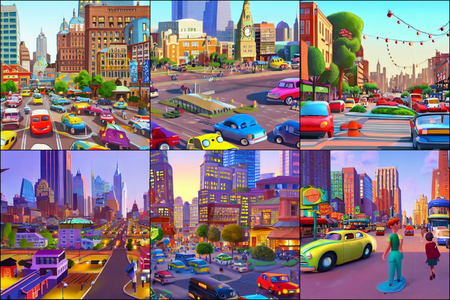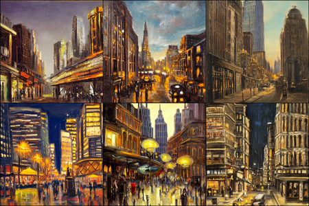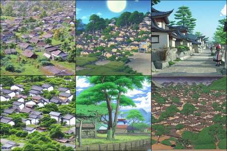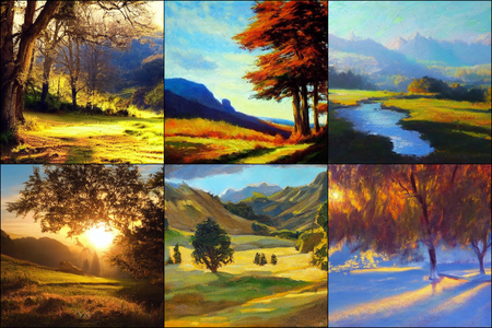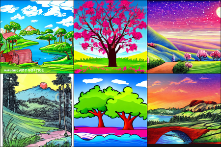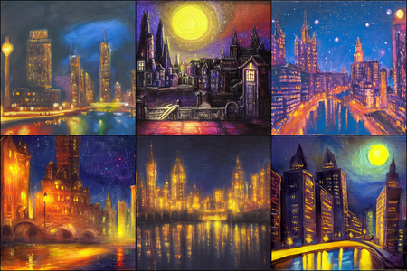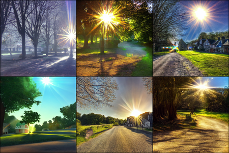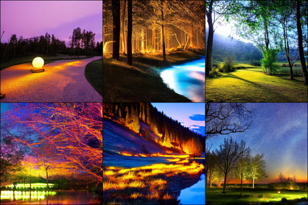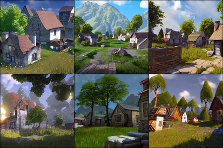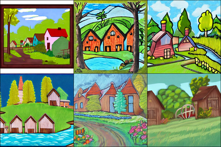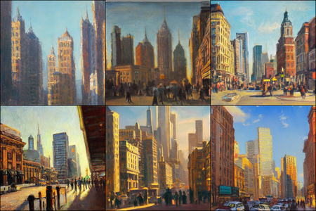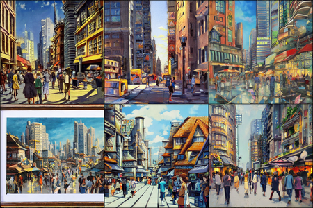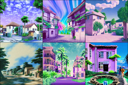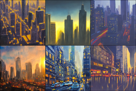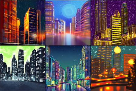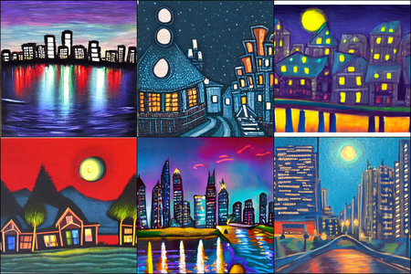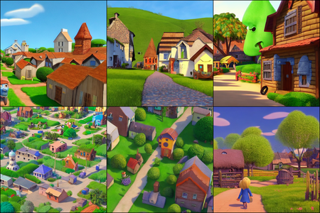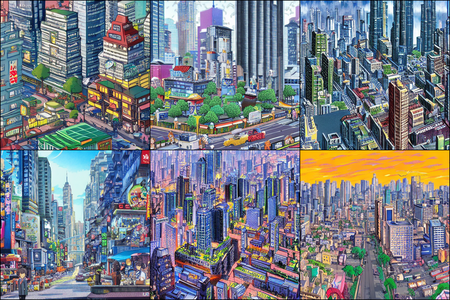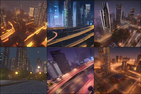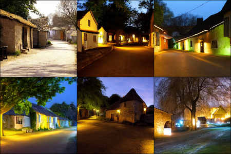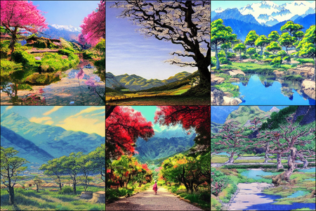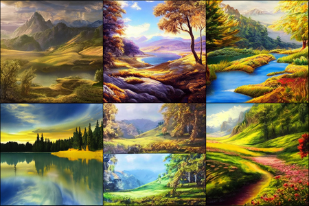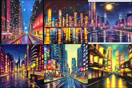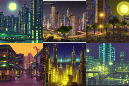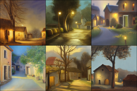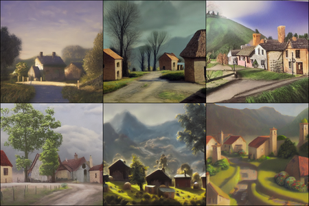 | | a beautiful landscape | a quiet village | a bustling cityscape | a nighttime cityscape |