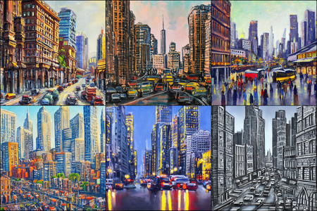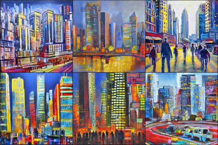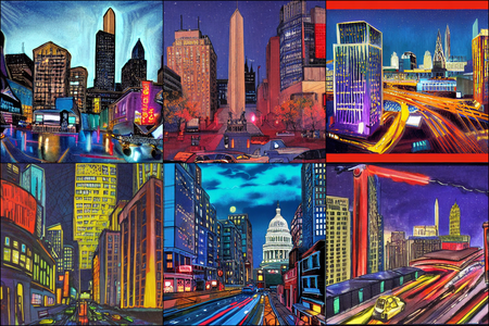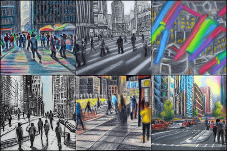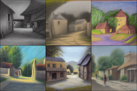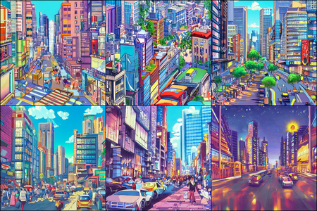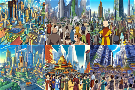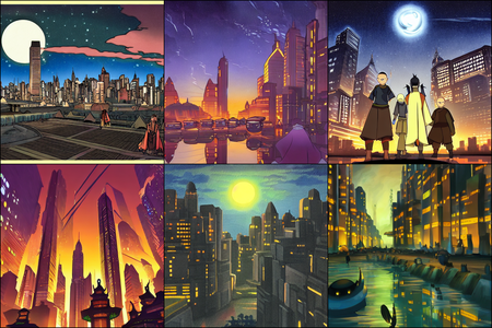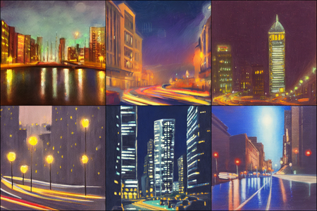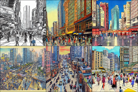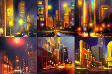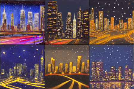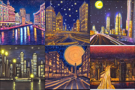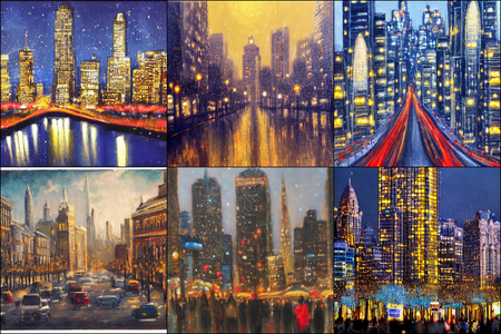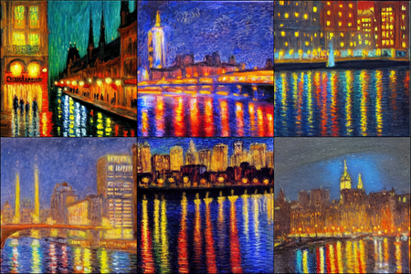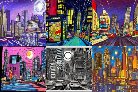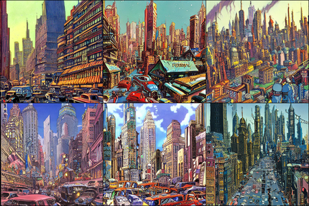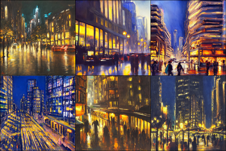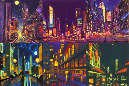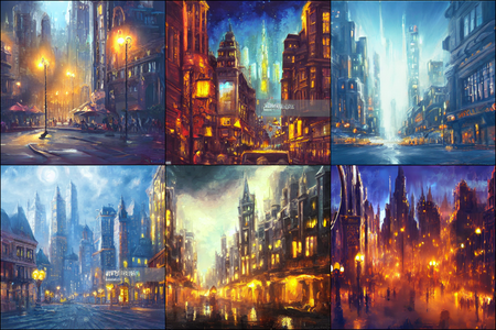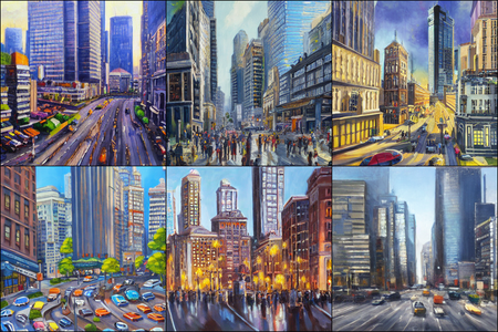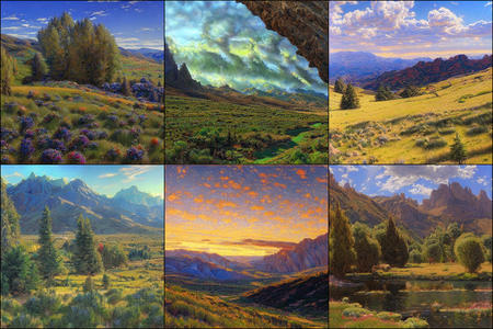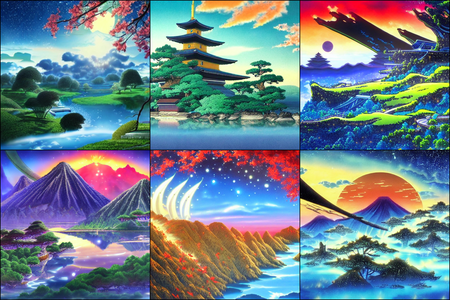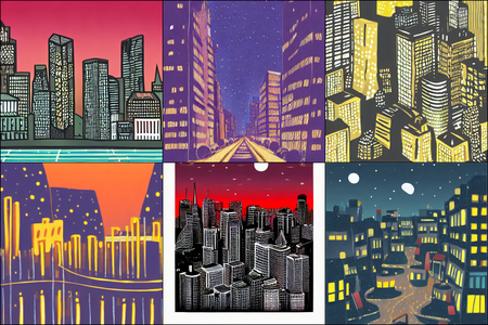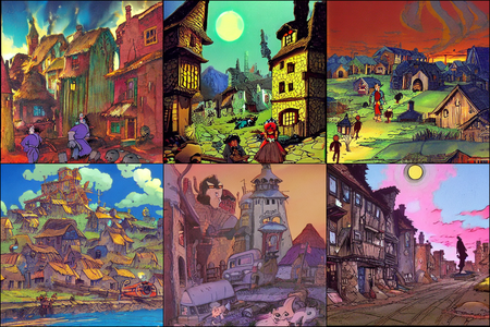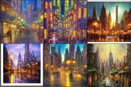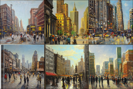 | | a beautiful landscape | a quiet village | a bustling cityscape | a nighttime cityscape |